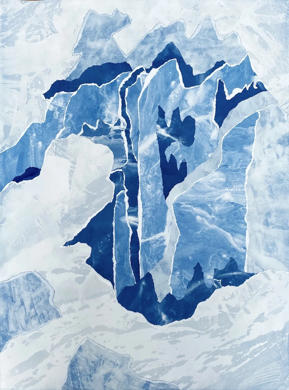 Lucid Dreams VII, Cyanotype on Paper Collage, 48x 36, 2023