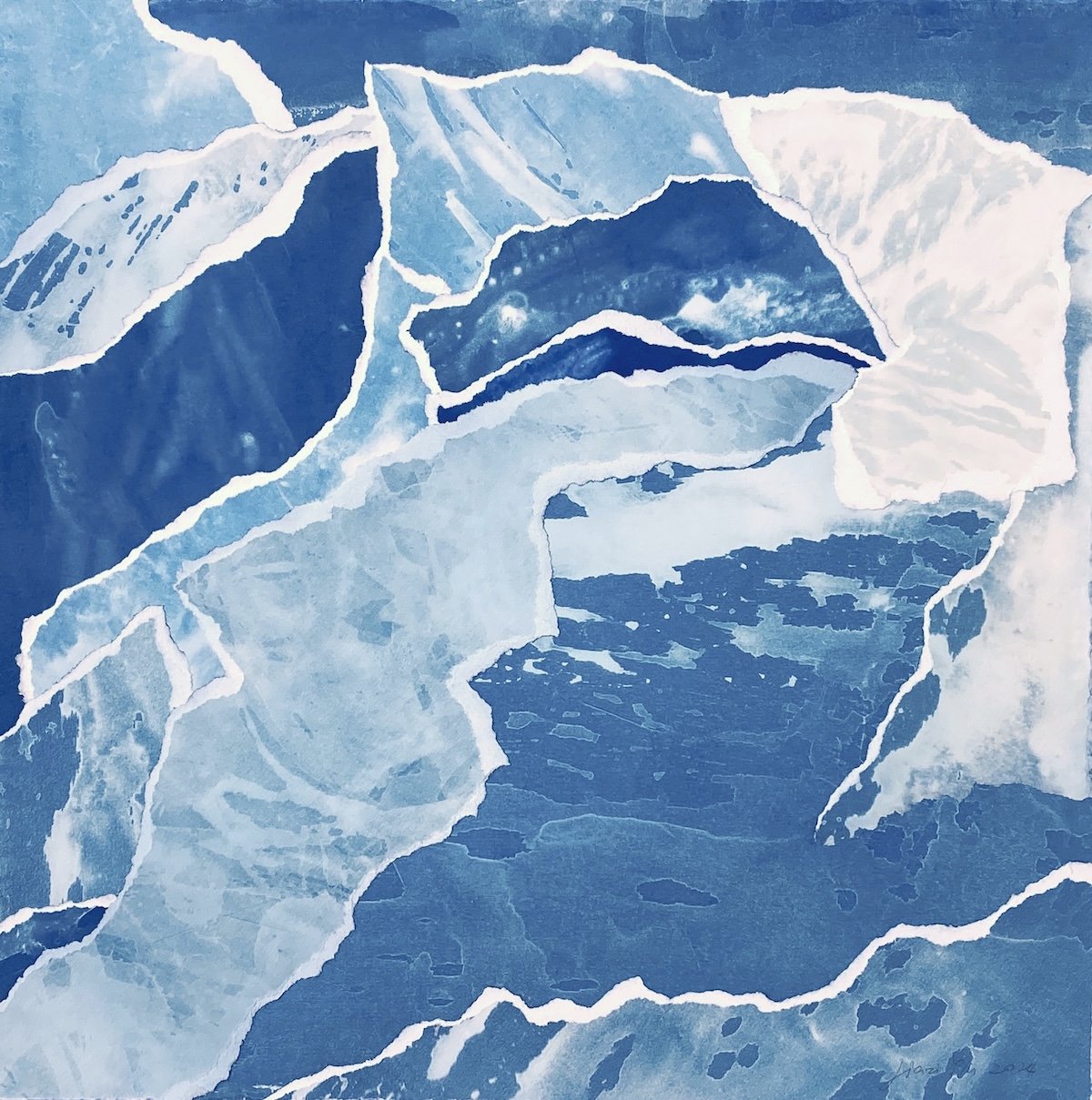 Lucid Dreams after Shi Tao V, Cyanotype on Paper Collage, 24x 24, 2024